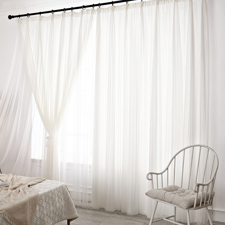 2重デザイン おしゃれ 清新感をもたらす ホワイト ドレープ&レース一体型 遮像UVカット 一体型カーテン 2倍ヒダ