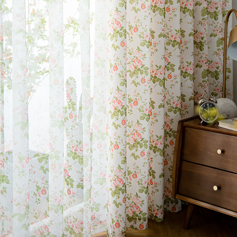 【2枚組】田園風 おしゃれ プリント花柄 明るい部屋雰囲気 洗濯OK 半遮光 遮像 UVカット カーテンセット 2倍ヒダ