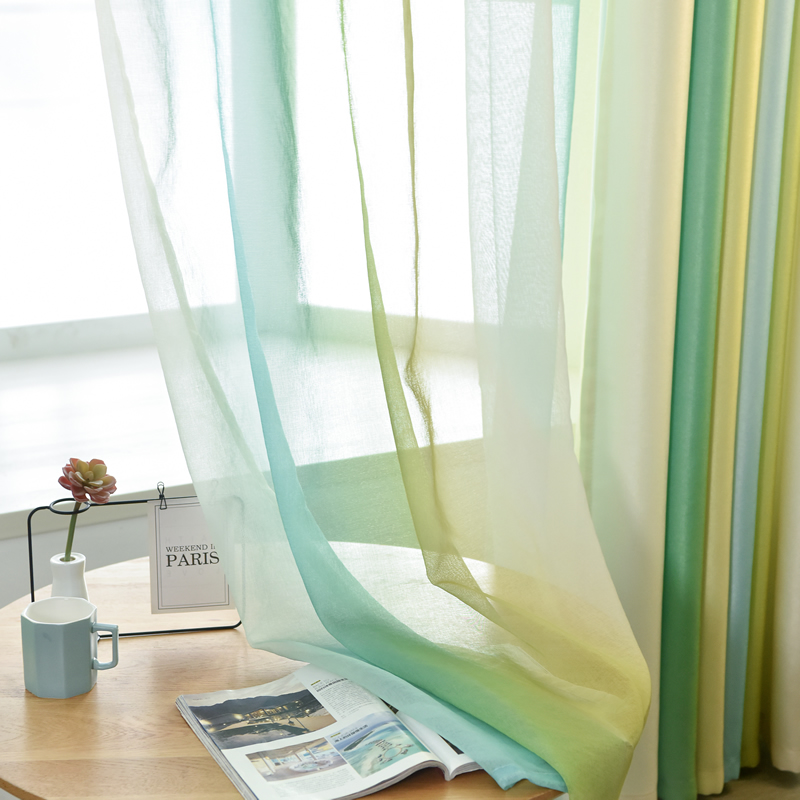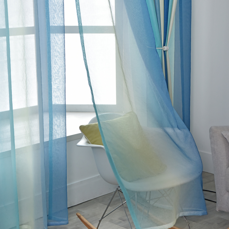 【レース】西海岸風 清新感 グラデーションのカラー 目隠し おしゃれ レースカーテン 2倍ヒダ