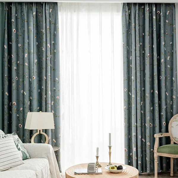 【2枚組】アメリカ田園風 花柄 清新感 雰囲気が一気に変わる ドレープ1枚&レース1枚 おしゃれ 断熱保温 防音 遮光カーテン2倍ヒダ