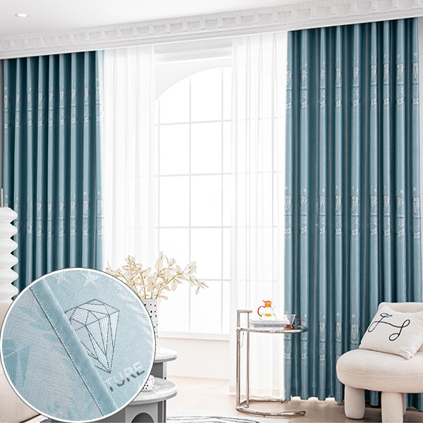 【2枚組】ジャガード ダイヤ柄 可愛い 遮光2級 厚手 北欧 おしゃれ リビング 寝室 ドレープ1枚&レース1枚 カーテンセット 2倍ヒダ