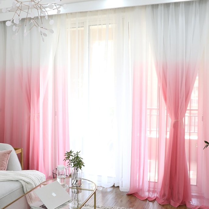 【2枚組】姫系 かわいい グラデーション 断熱 保温 おしゃれ カーテン 遮光 遮光 カーテンセット 2倍ヒダ