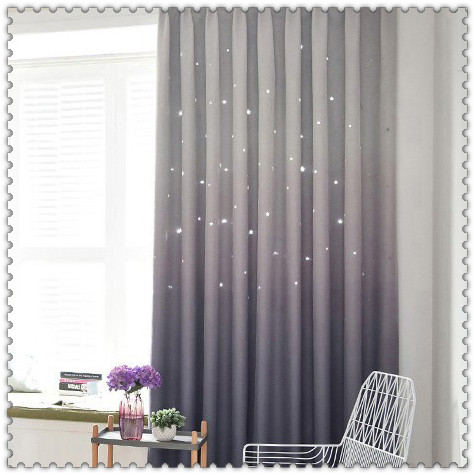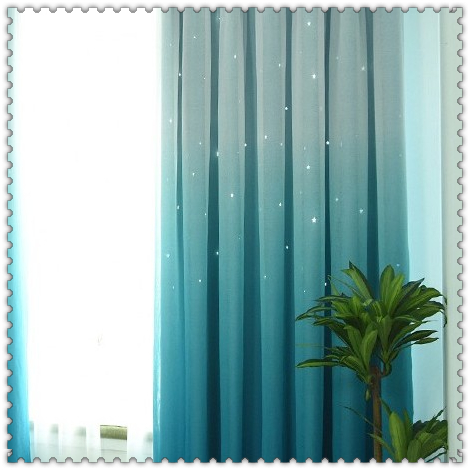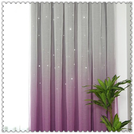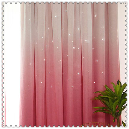姫系 かわいい 透かし彫り 星柄 二重 メルヘン 厚地 遮光1級 遮熱保温 一体型カーテン 2倍ヒダ