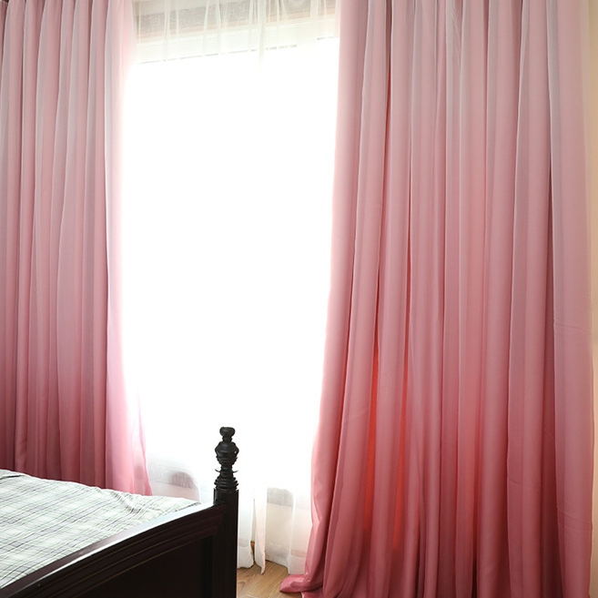 【一体型】3色 おしゃれ グラデーションデザイン UVカット 昼も夜も目隠し 一体型カーテン 2倍ヒダ