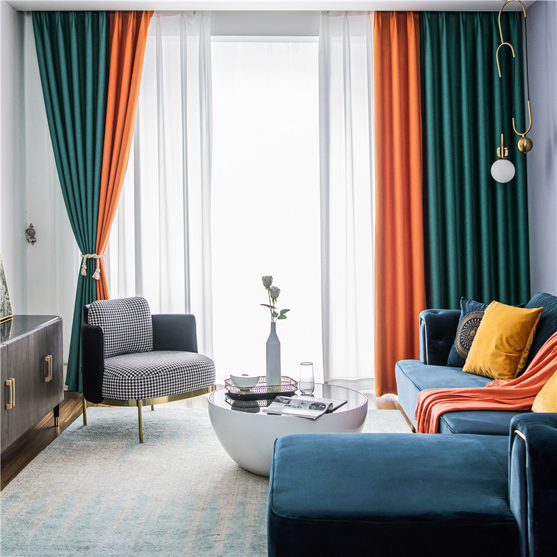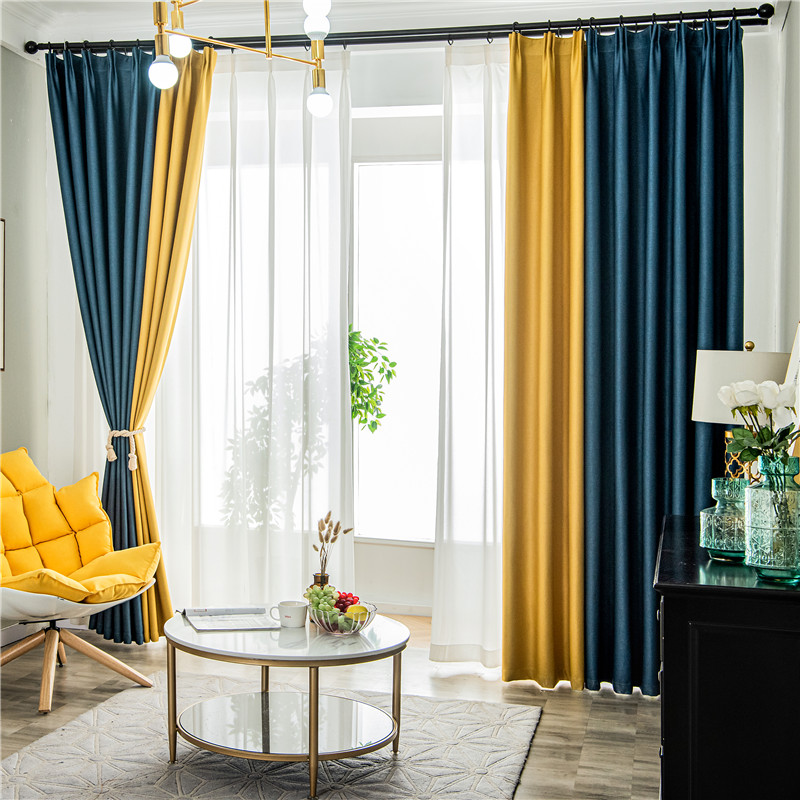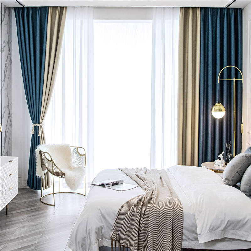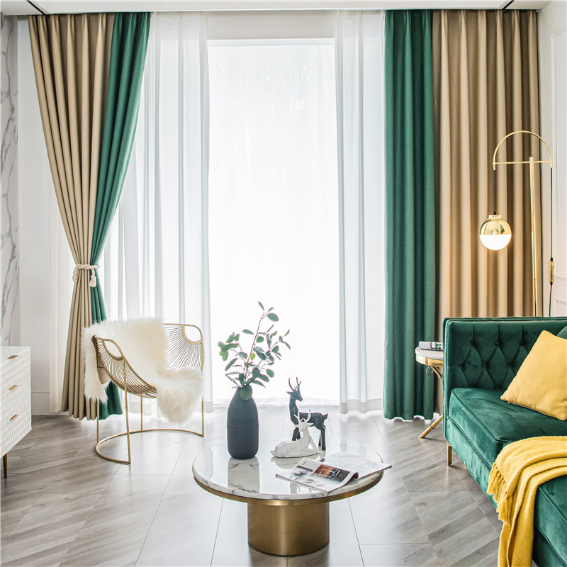 【2枚組】北欧 配色 切り替え 洗える ドレープ1枚&レース1枚 遮光 取り付け簡単 良い垂れ感 おしゃれ 断熱保温 カーテン 2倍ヒダ
