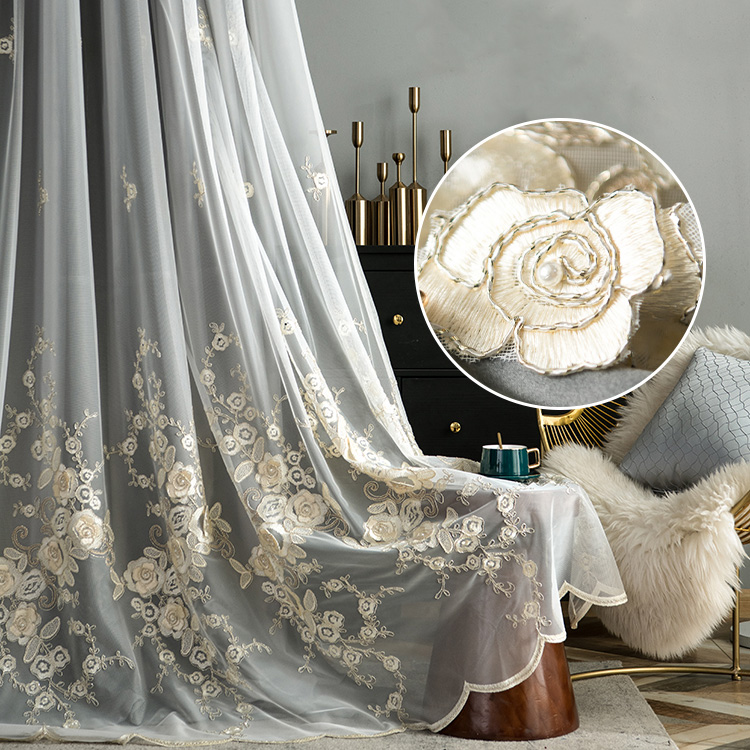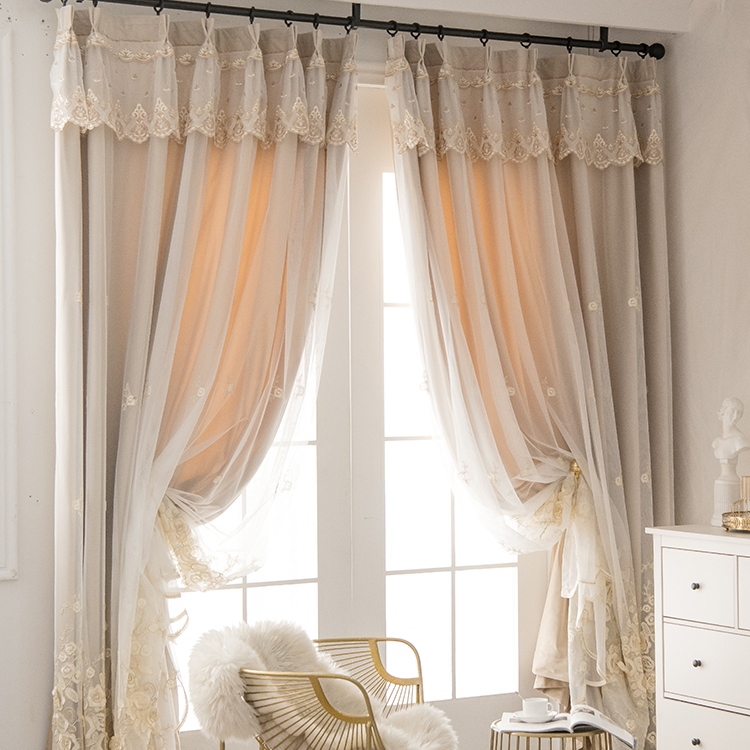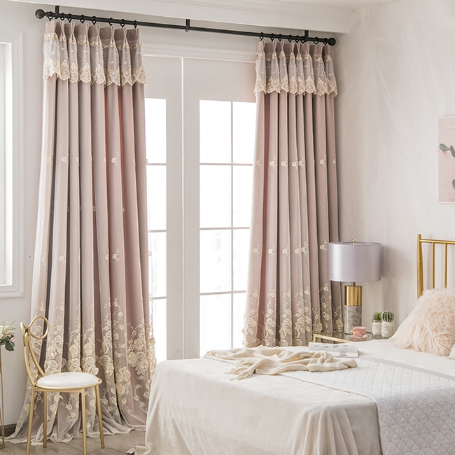 華奢 ゴージャス 一体型 カーテン お花柄 パール飾り 宮殿風 遮光2級 二重カーテン おしゃれ カーテン 華麗 刺繡 カーテン 2倍ヒダ