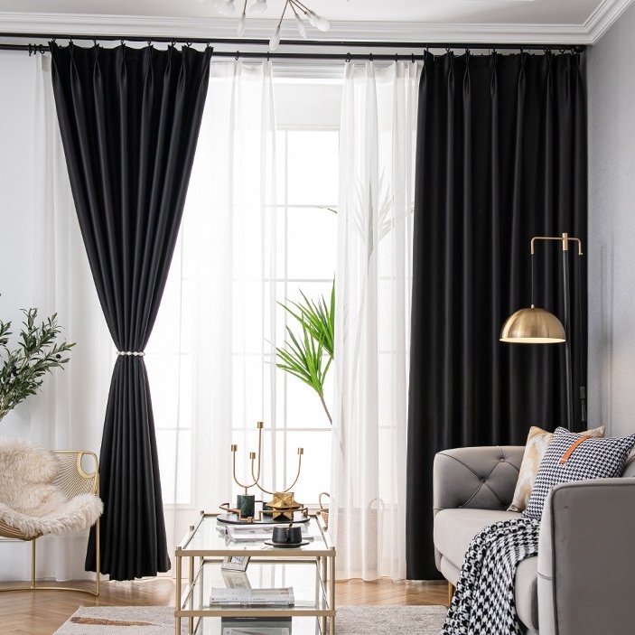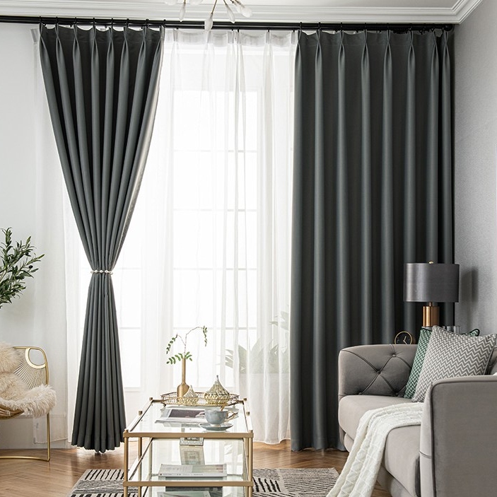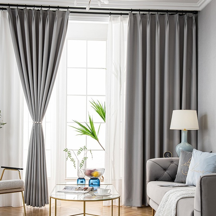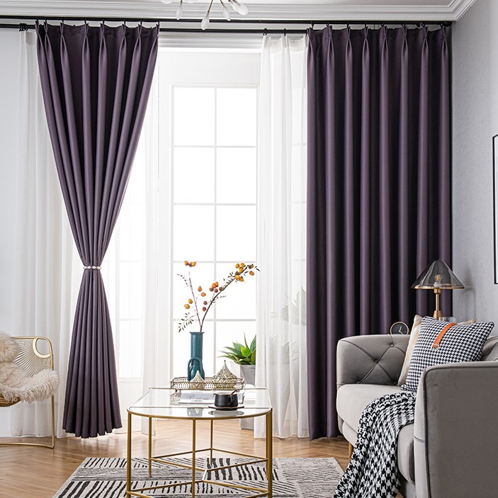 おしゃれ 遮光1級 断熱 防音 シンプル 無地 ドレープカーテン 2倍ヒダ