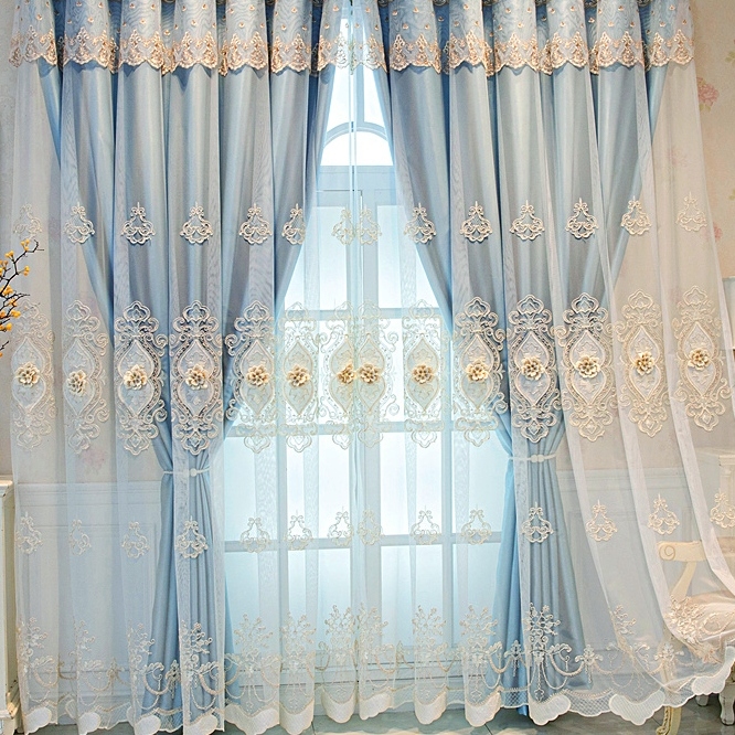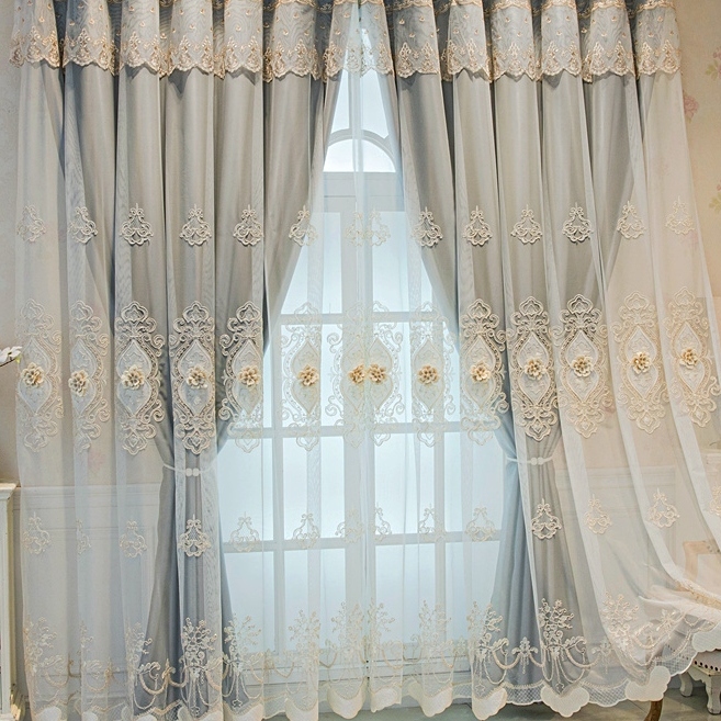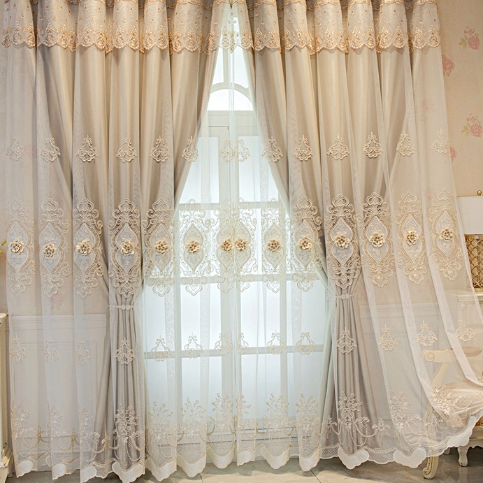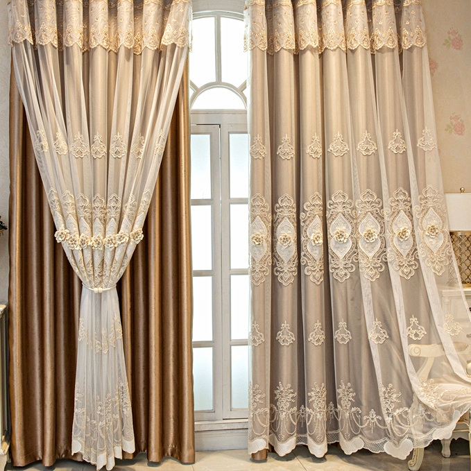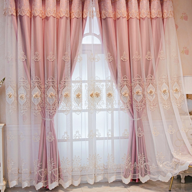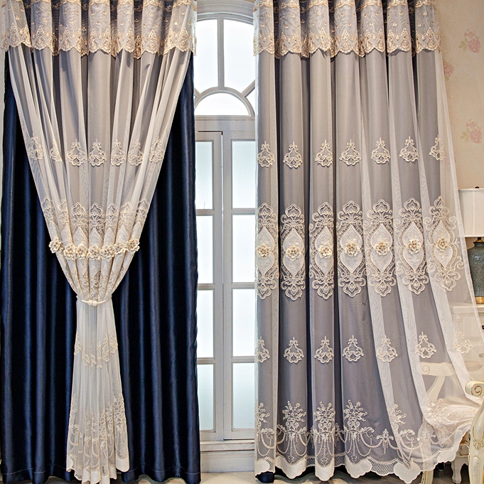 【一体型】上品 7色選べる きれいな花柄 刺绣 遮光 UVカット 一体型カーテン 2倍ヒダ