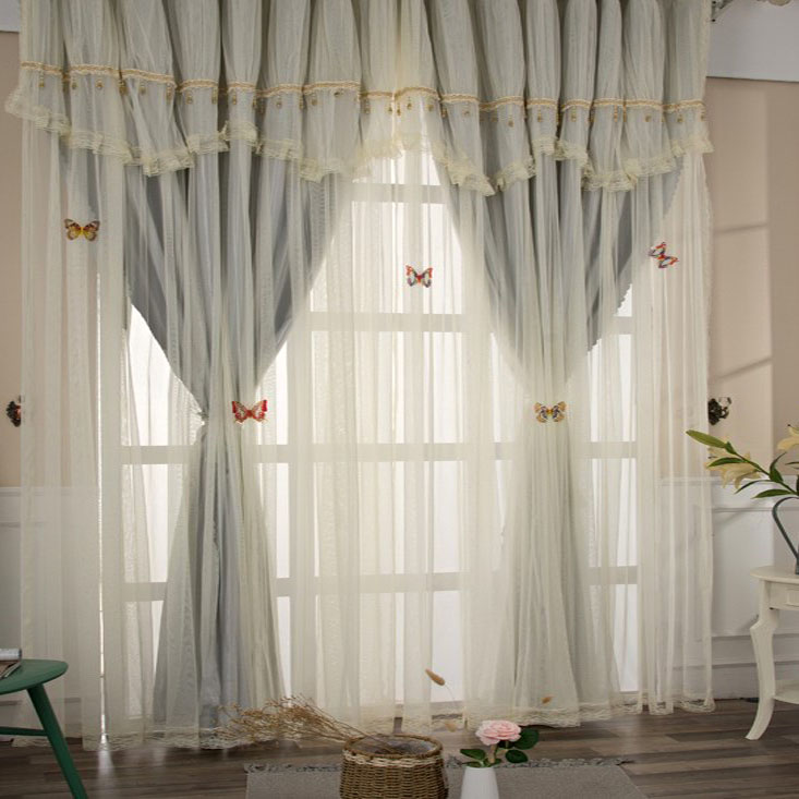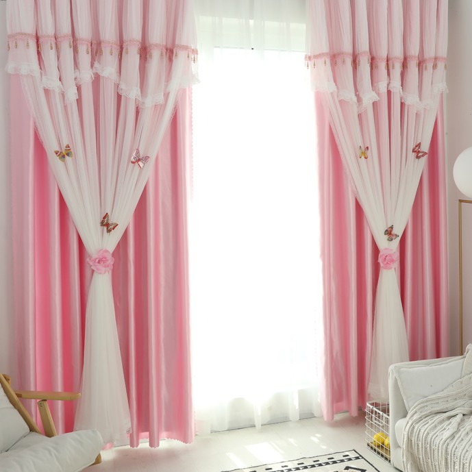 おしゃれ 宮殿風 2重デザイン お姫系 北欧スタイル ドレープ&レース一体型デザイン 遮光カーテン 2倍ヒダ