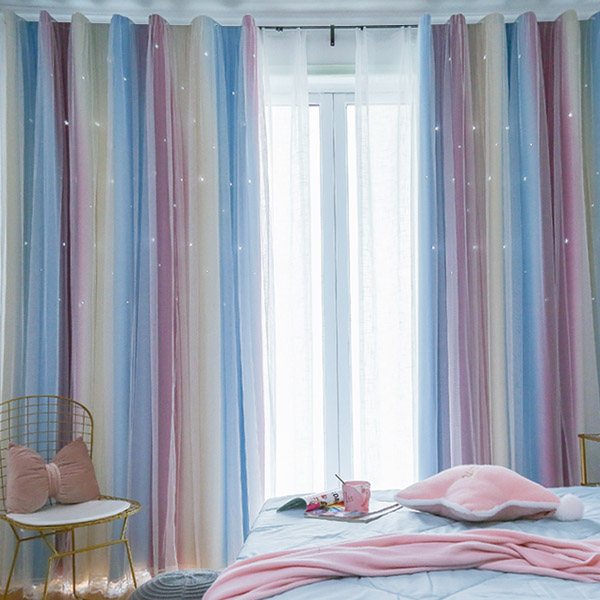 【一体型】目を奪われる ドレープ&レース一体型 透かし彫り星 遮光1級 遮熱 おしゃれ カーテン 2倍ヒダ