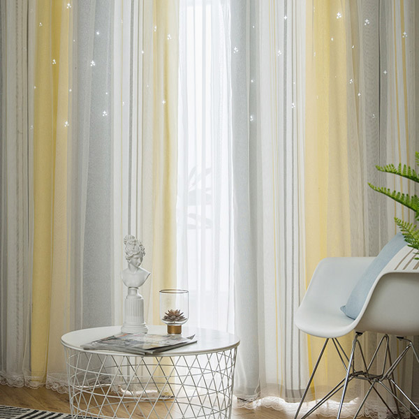 おしゃれ 透かし彫り星柄 ドレープとレース一体型カーテン 垂れ感 防音 シンプル 遮光 カーテン 2倍ヒダ