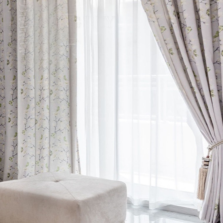 【2枚組】チュラルな雰囲気を溢れる おしゃれ 激安価 北欧風 花柄 半遮光 セットカーテン 2倍ヒダ