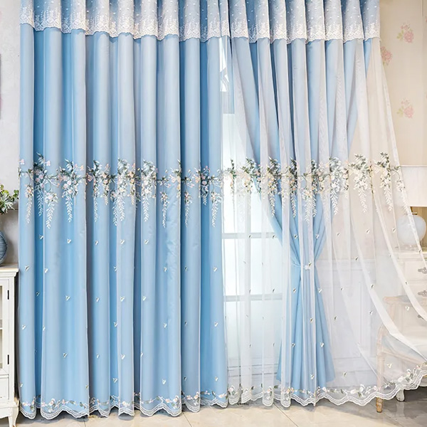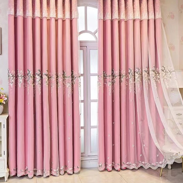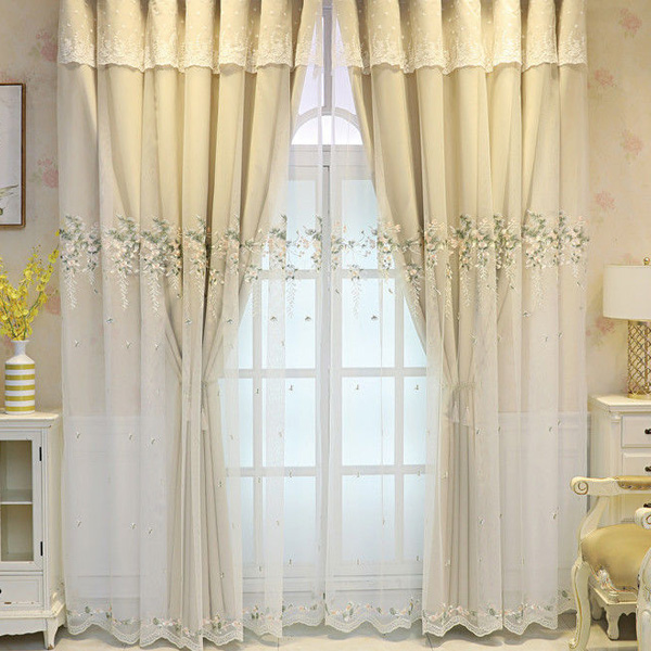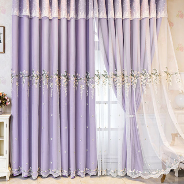 姫系 花柄刺繍 おしゃれ シンプル レープとレース一体型カーテン 遮光1級 遮音 断熱保温 2倍ヒダ