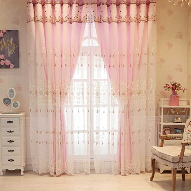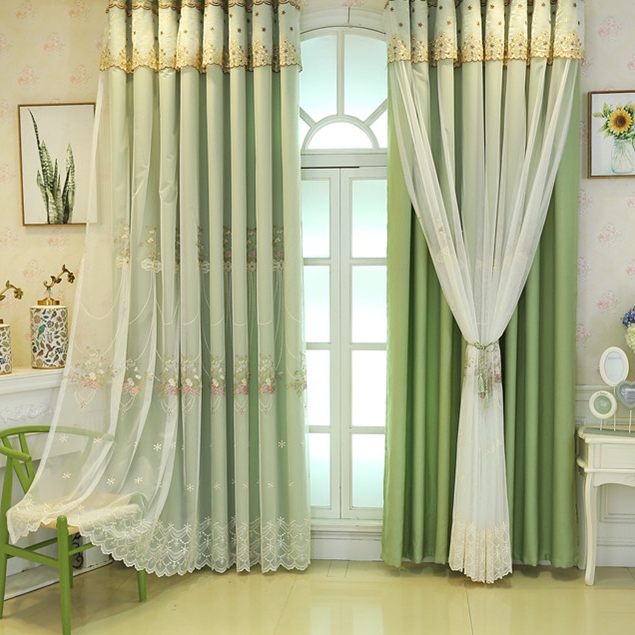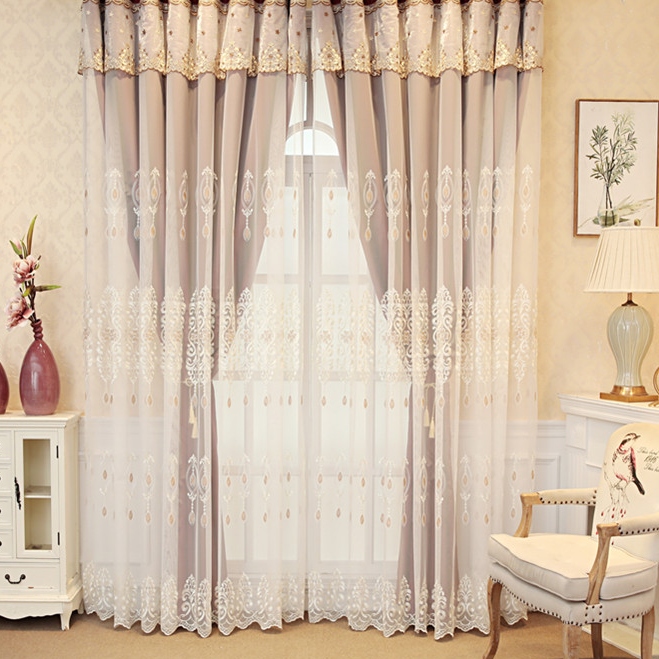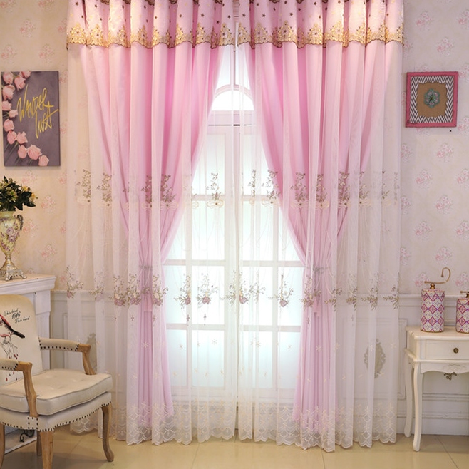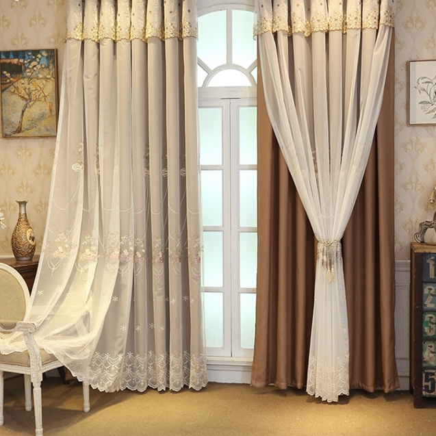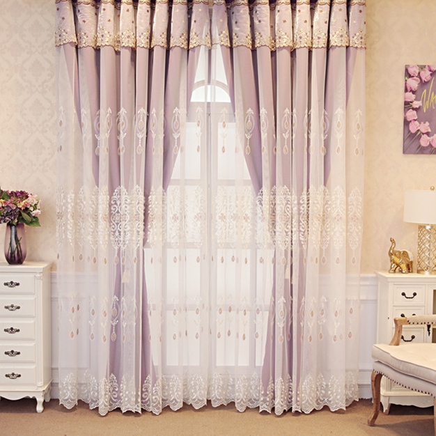 一体型 上品なロマンチック 花柄 刺繍ドレープ&レース一体型 カーテン 遮光 2倍ヒダ