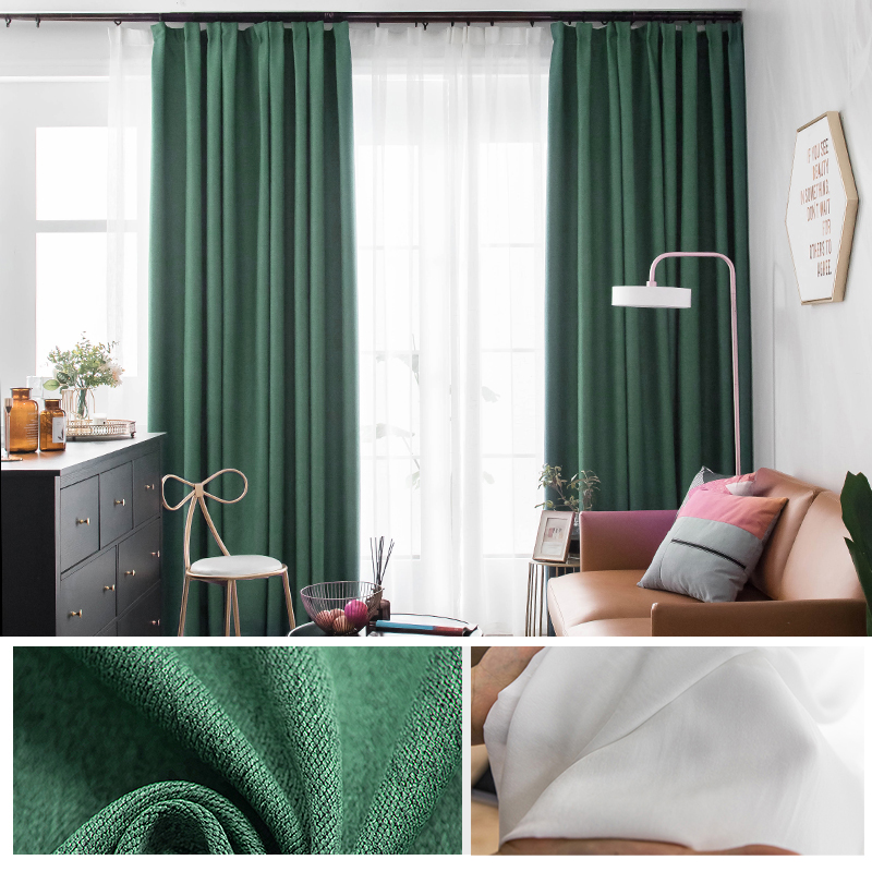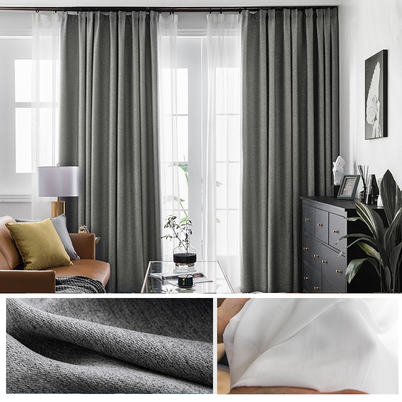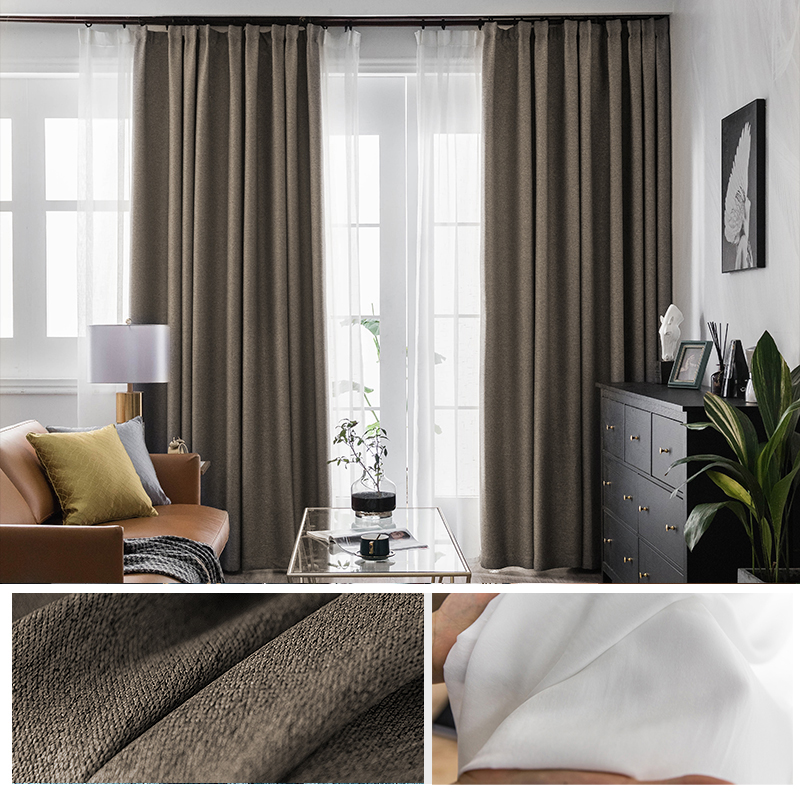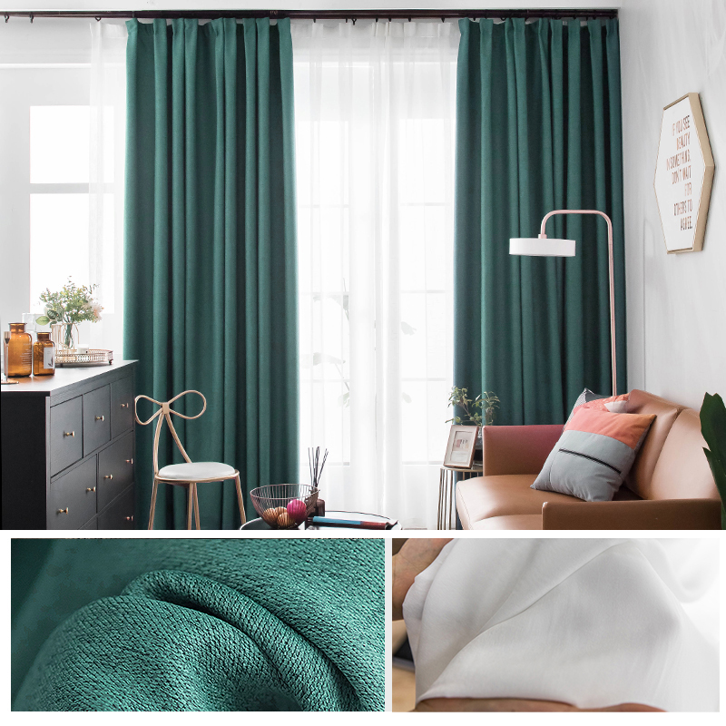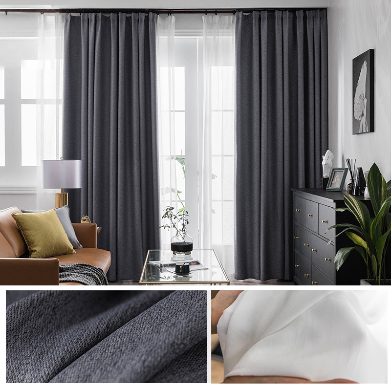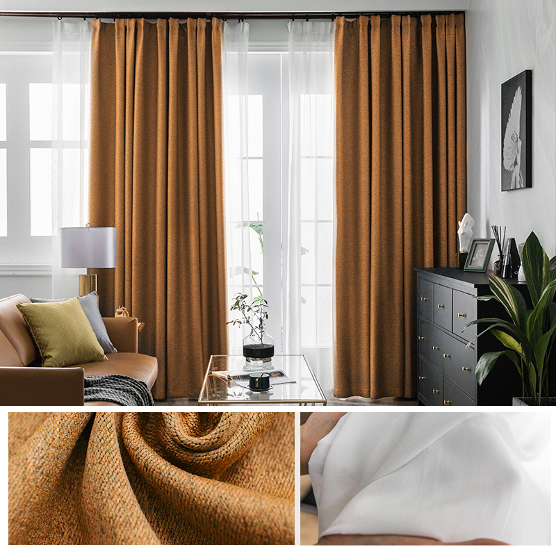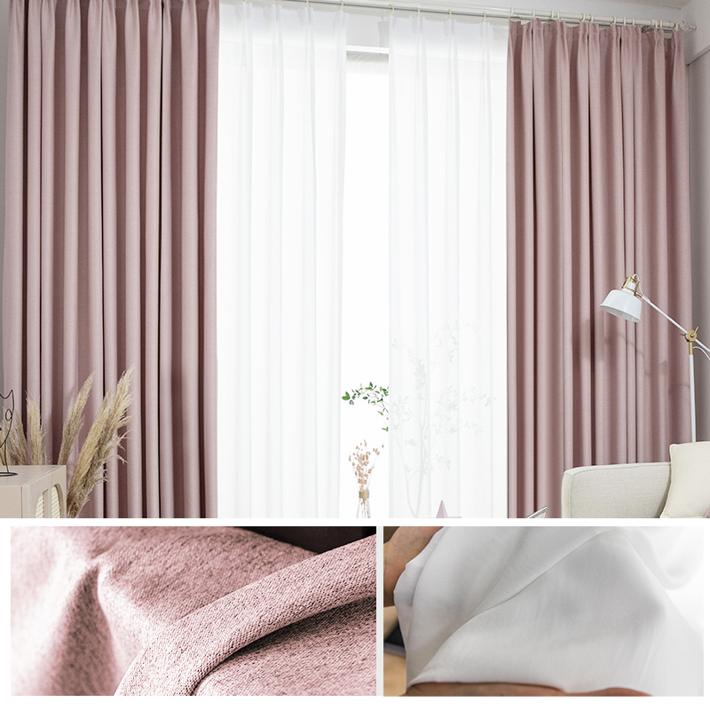 【2枚組】おしゃれ 全10色 遮光カーテン 綿麻 断熱保温 無地 厚地 シンプル リビングルーム 高機能 遮光1級 ドレープ+レース セットカーテン 2倍ヒダ