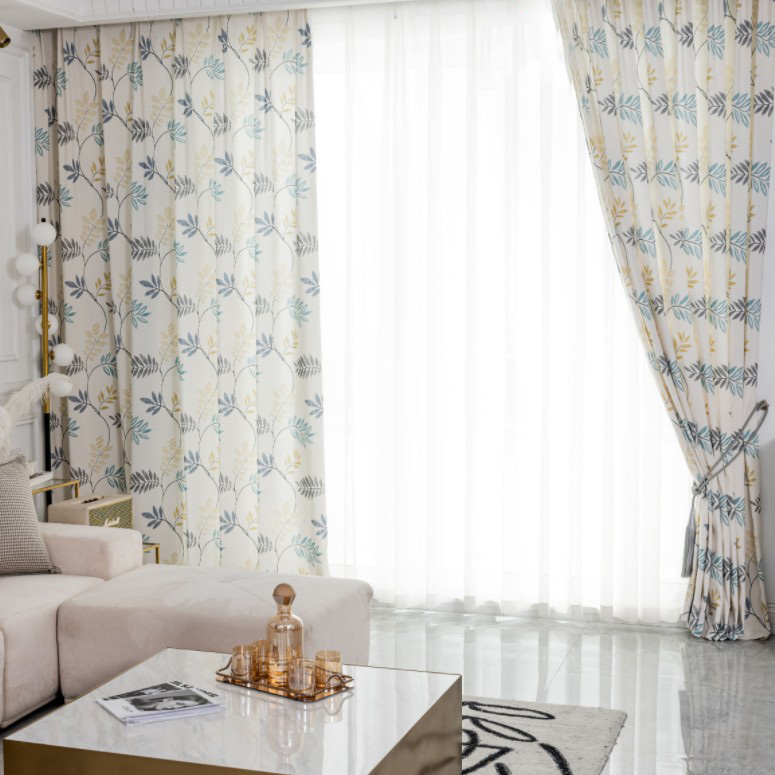 【2枚組】アメカジ 田園風 おしゃれ 清新である 草花プリント 花粉防虫 遮光2級 消臭 通年適用 セットカーテン 2倍ヒダ