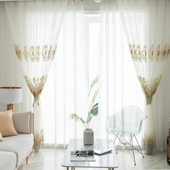 【2枚組】美しい刺繍 ナチュラル 北欧風 おしゃれ 花柄 上品なホワイト色系 清新感 ひんやり UVカット レース セットカーテン 2倍ヒダ