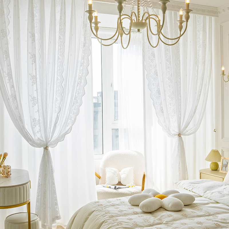 姫系 北欧 可愛い 女子部屋 おしゃれ カーテン 一体型 カーテン エレガント お花柄 刺繡 半遮光 ロマンティック2倍ヒダ