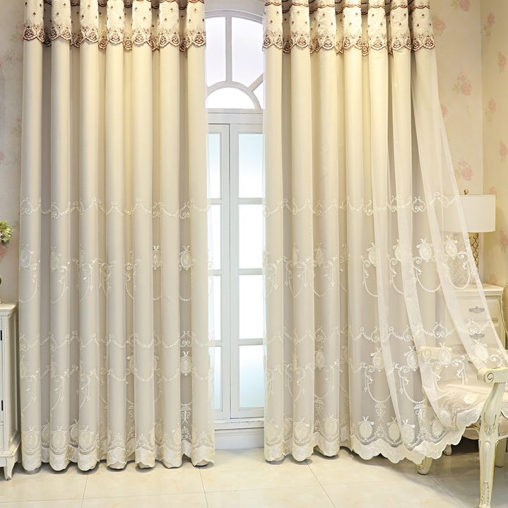 おしゃれ 二重 刺繡入り エレガント 遮光1級 遮熱保温 一体型カーテン 2倍ヒダ