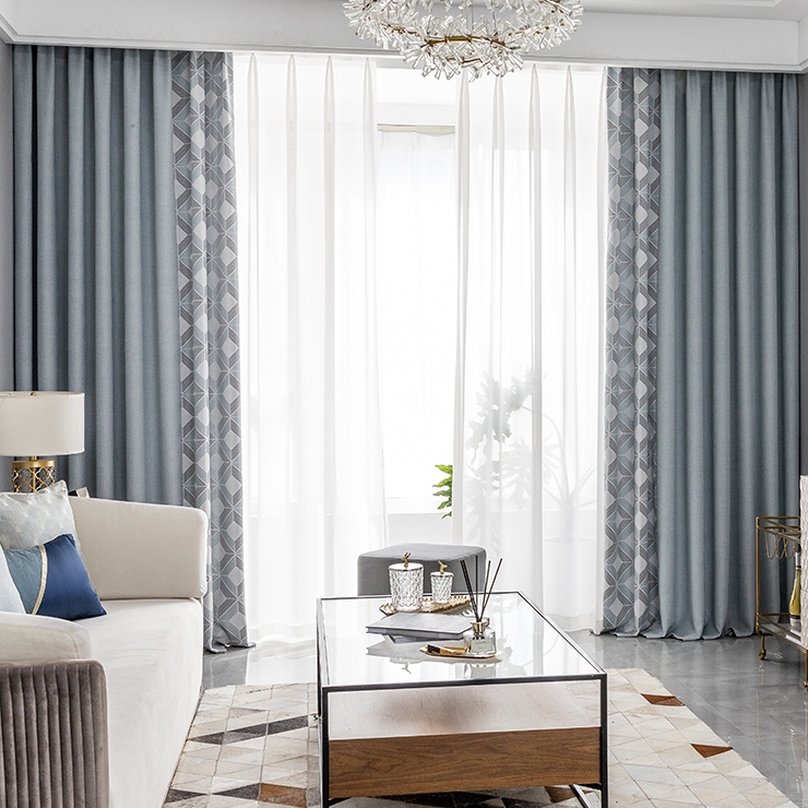【2枚組】おしゃれ 遮光1級 遮熱保温 遮音 北欧風デザイン シンプル 切り替えセットカーテン 2倍ヒダ