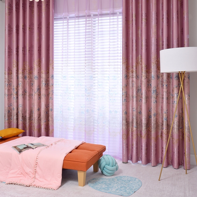 【2枚組】【セット】 北欧 プリント花柄 遮光1級 断熱 ドレープ1枚&レース1枚 2倍ヒダ