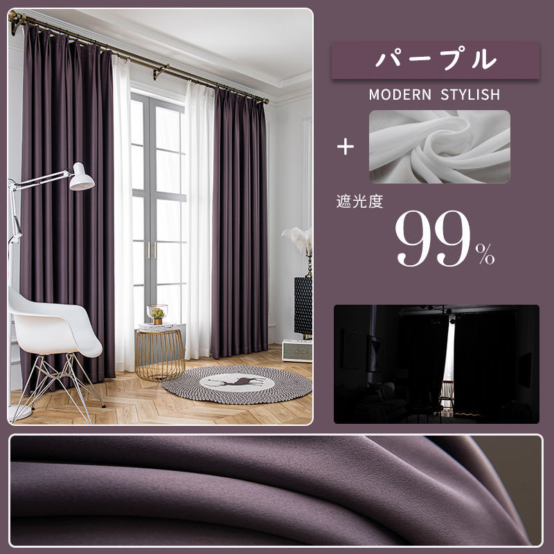 【2枚組】【遮光カーテン・遮光1級】 無地 シンプル 遮光 おしゃれ 長持ち 垂れ感 防音 1級遮光 8色 厚地 洗えるセットカーテン 2倍ヒダ