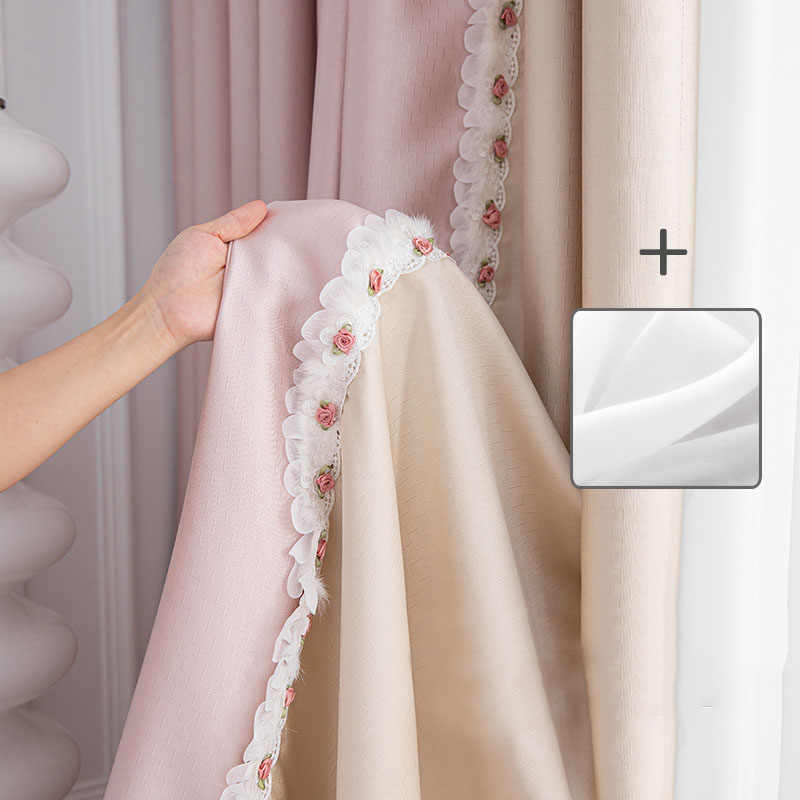 【2枚組】 遮光1級 安い 遮熱保温 防音 花裾飾り 乙女系 おしゃれ セットカーテン 2倍ヒダ