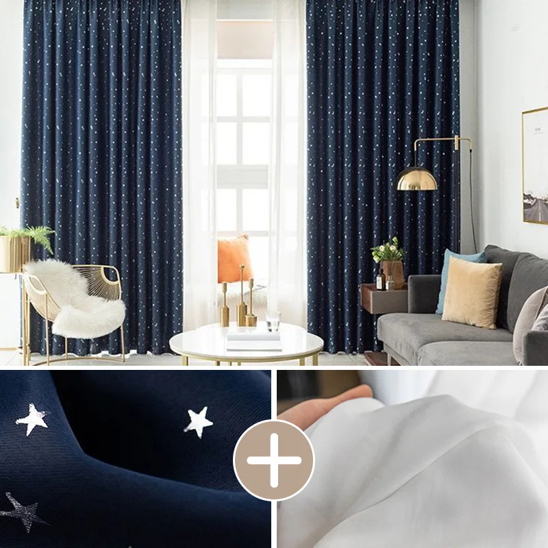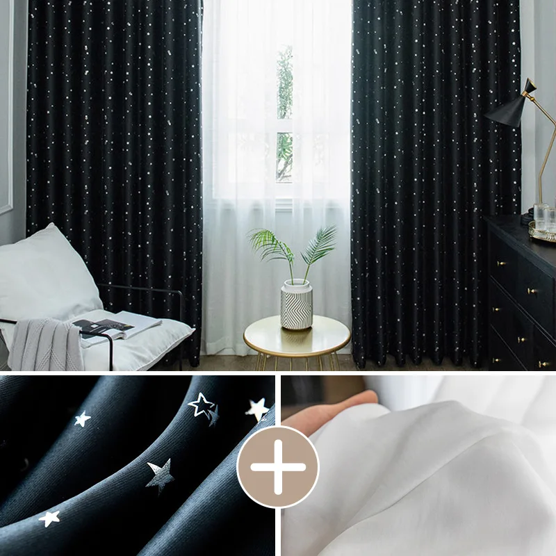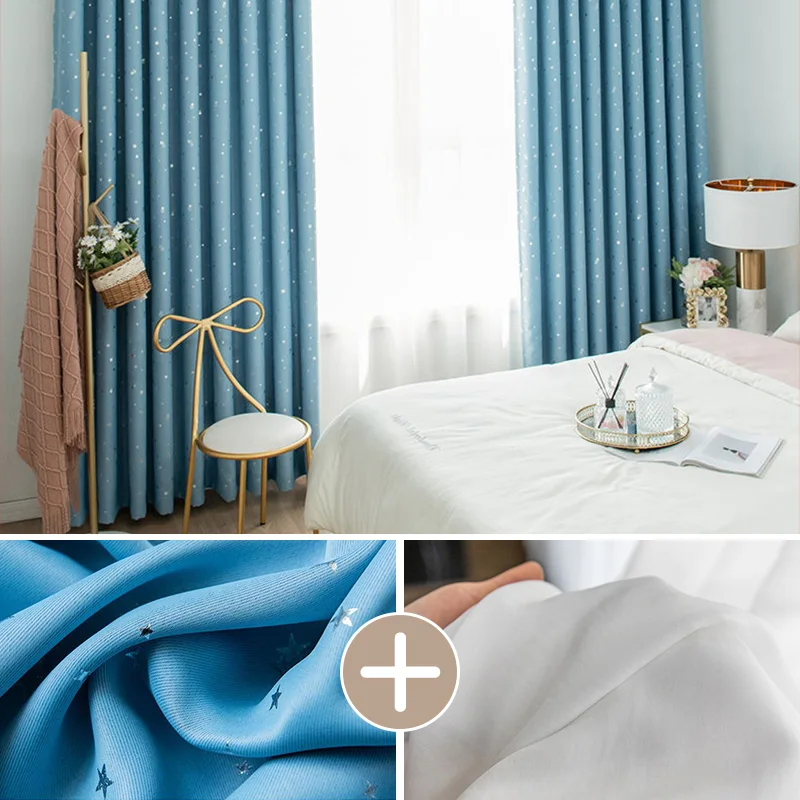 【2枚組】1級遮光 星柄 防寒 断熱 おしゃれな6色 防音 厚地 オーダーセットカーテン 2倍ヒダ