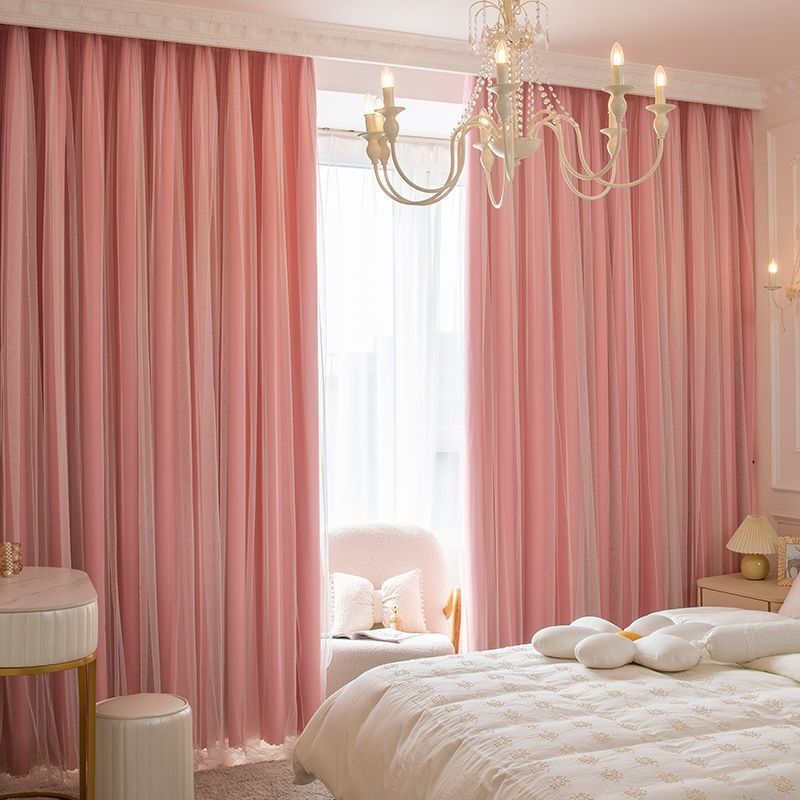 おしゃれ プリンセス風 全8色 お姫系 可愛い 遮光 遮像 UVカット 二重デザイン ドレープ+レース 一体型カーテン 2倍ヒダ