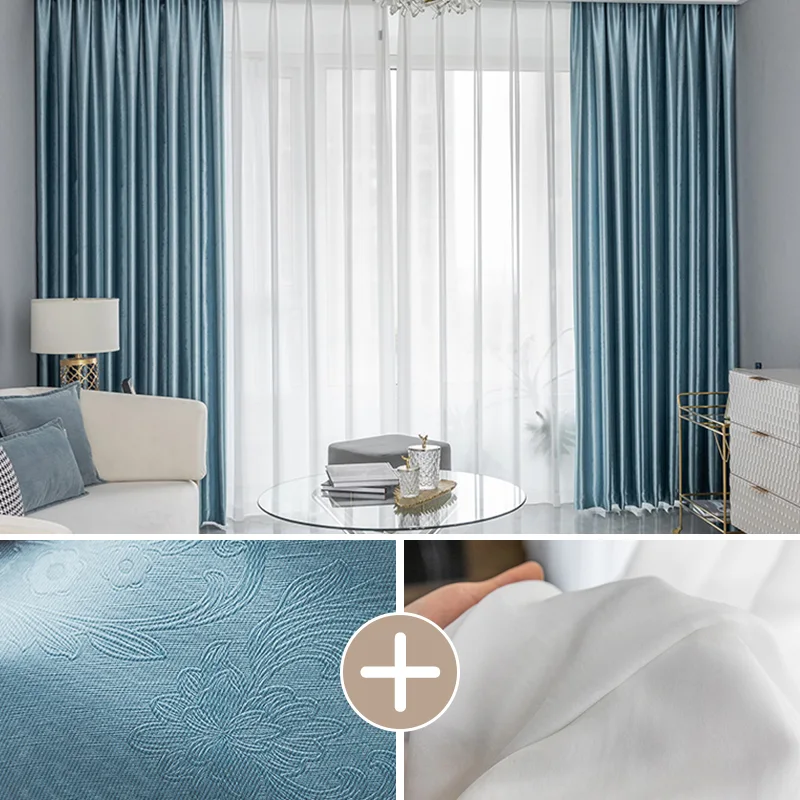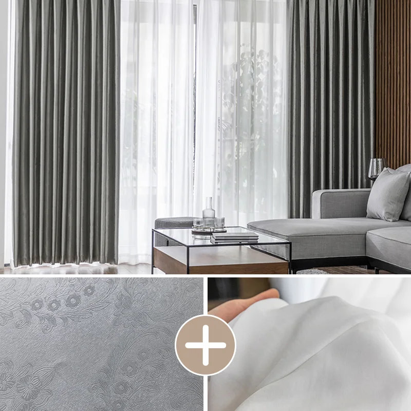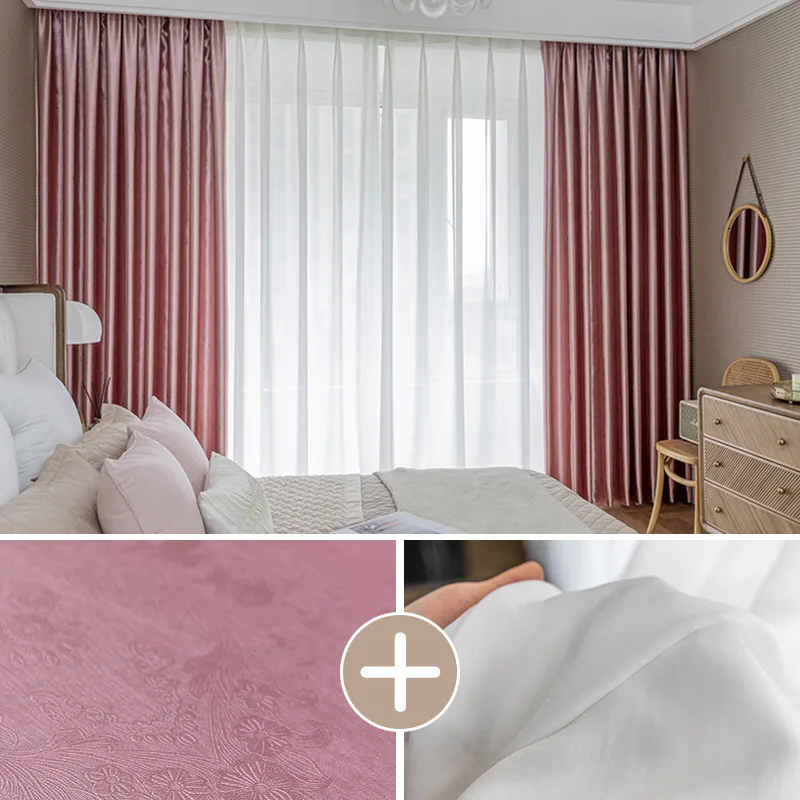 【2枚組】上品な材質 おしゃれなボタニカル柄 遮光1級 断熱保温 カーテンセット ドレープ1枚&レース1枚 2倍ヒダ お買い得