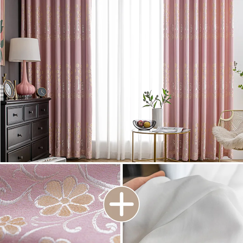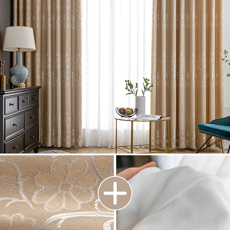 【2枚組】 ボタニカル柄 おしゃれ モダン シンプル 遮光 ドレープ1枚&レース1枚 セットカーテン 防寒 防音 遮熱 2倍ヒダ