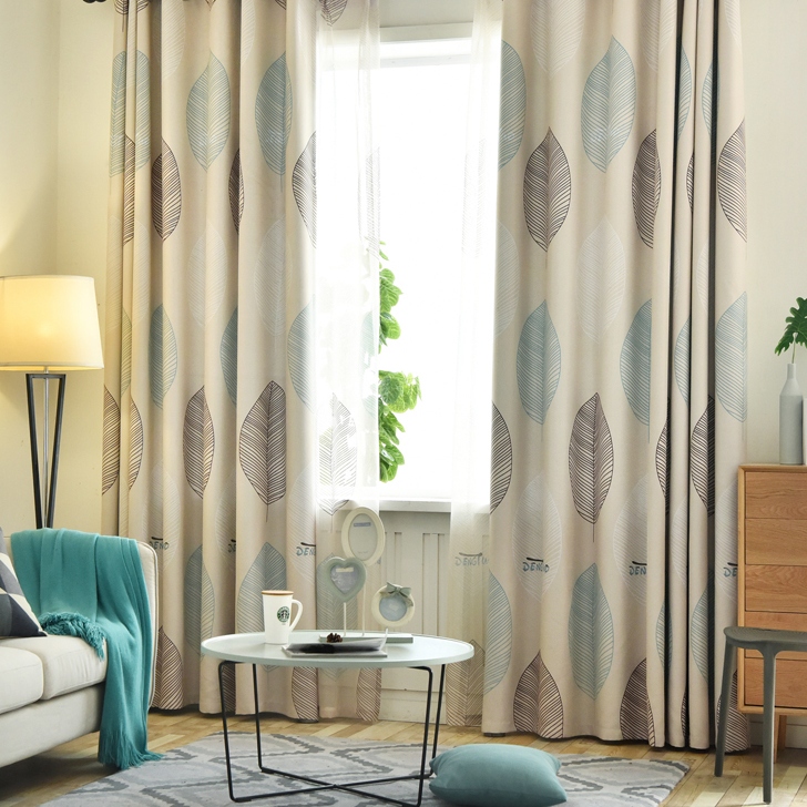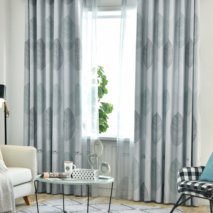 【2枚組】北欧 葉柄 リーフ 2色 遮光1級 遮熱 防音 保温 ドレープ1枚&レース1枚 セットカーテン 2倍ヒダ