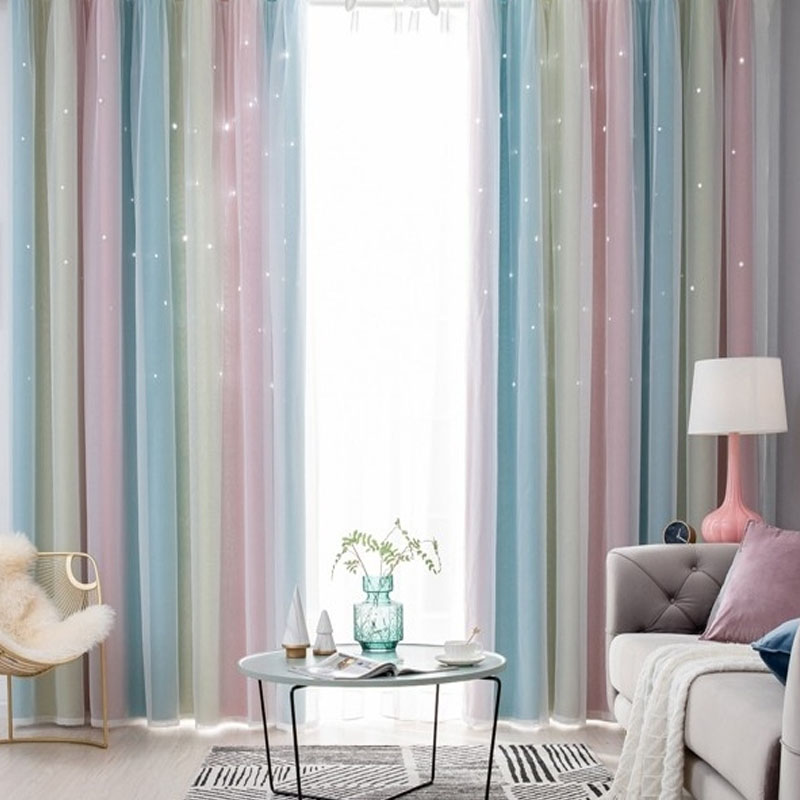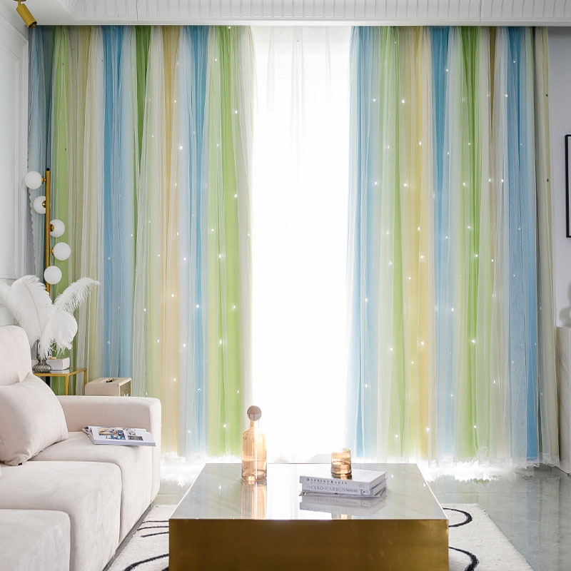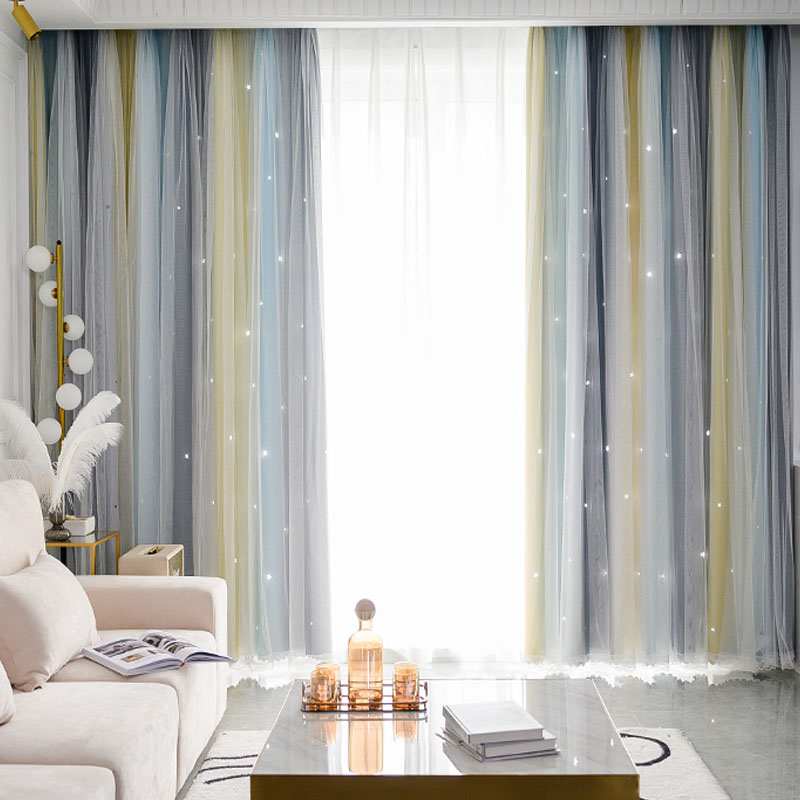 遮光1級 遮熱 保温 透かし彫り 星柄 グラデーション おしゃれな4色 一体型カーテン 2倍ヒダ