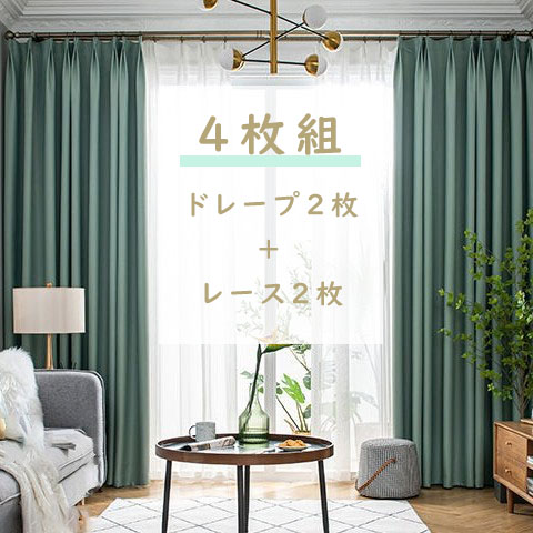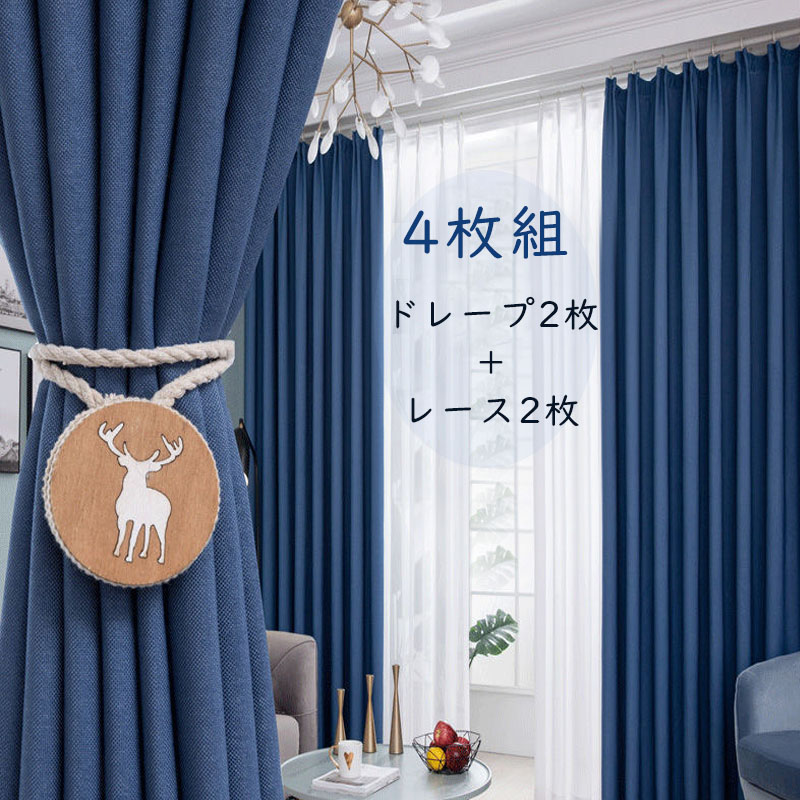 【4枚組】北欧テイスト カーテンセット ドレープ2枚&レース2枚 断熱保温 遮光 おしゃれ シンプル カーテン 垂れ感 防音 2倍ヒダ