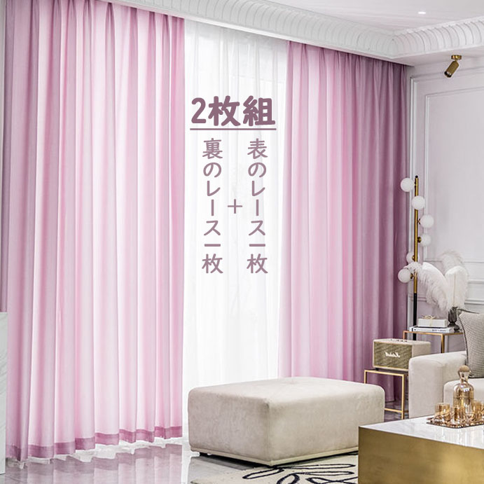 【2枚組】おしゃれ 大人気 エレガント 遮像 外から見にくい レース UVカット セットカーテン