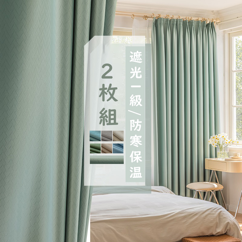【2枚組】遮光2級 遮熱 保温 6色 柔らかい生地 合わせやすい 無地 セットカーテン 2倍ヒダ