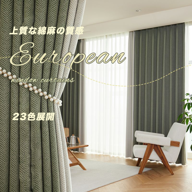 綿麻生地 節電対策 リビング 出窓 無地 オシャレ 洗える 安い 精密縫製 ドレープカーテン 2倍ヒダ