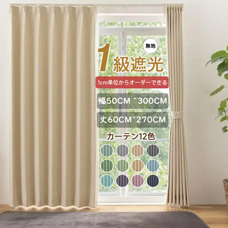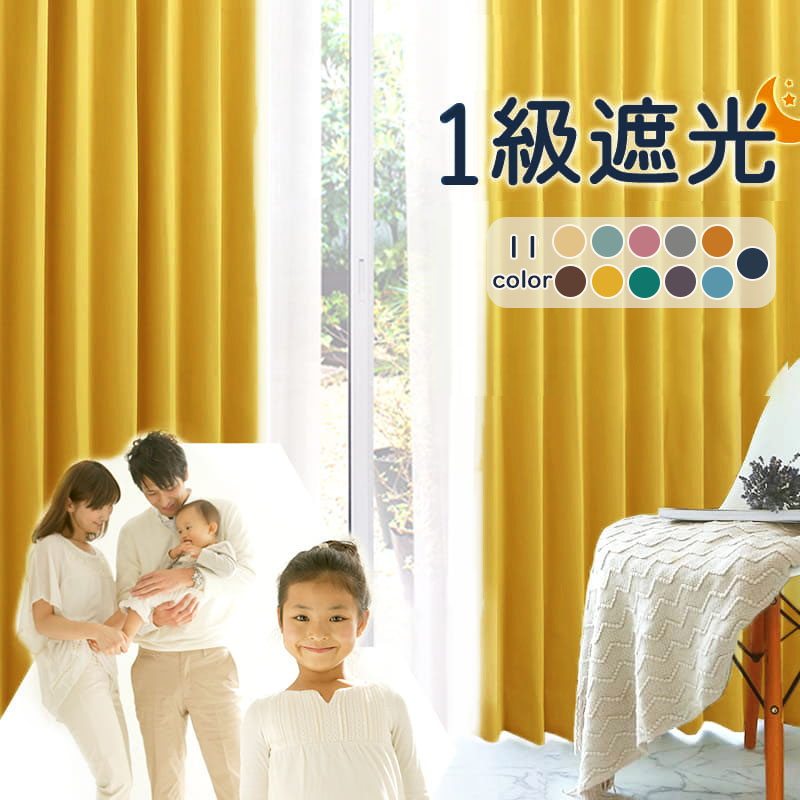1級遮光 遮光カーテン 全14色 おしゃれ シンプル 厚地 無地 断熱保温 防音 UVカット 洗濯OK ドレープカーテン 2倍ヒダ