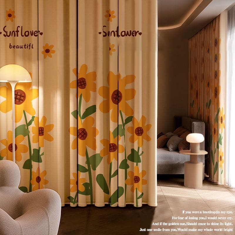 カーテン 遮光 ドレープ カーテン ひまわり 花柄 プリント おしゃれ カーテン 紫外線阻止 家具保護 安眠 効率up 2倍ヒダ