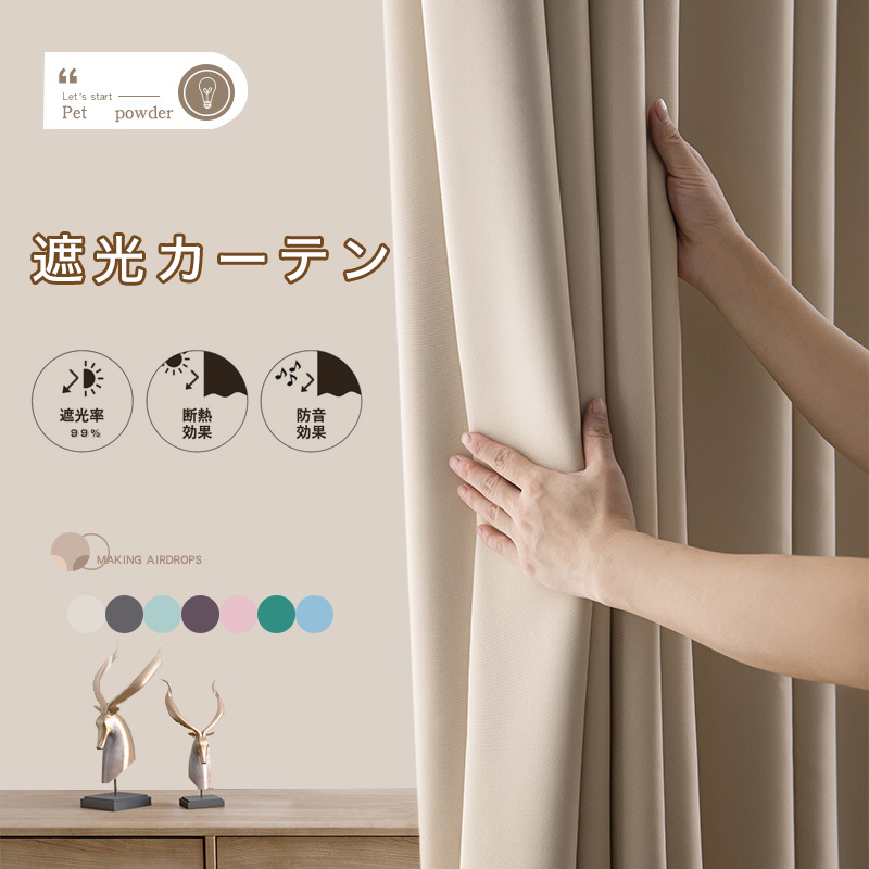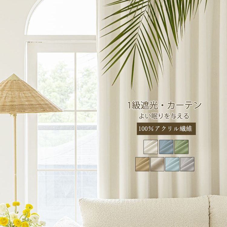 厳選素材 高品質 遮光カーテン 100%アクリル繊維 1級遮光 7色展開 厚地 おしゃれ 寝室 リビング用 遮熱保温 お買い得 合わせやすい 厚地 ドレープカーテン 2倍ヒダ