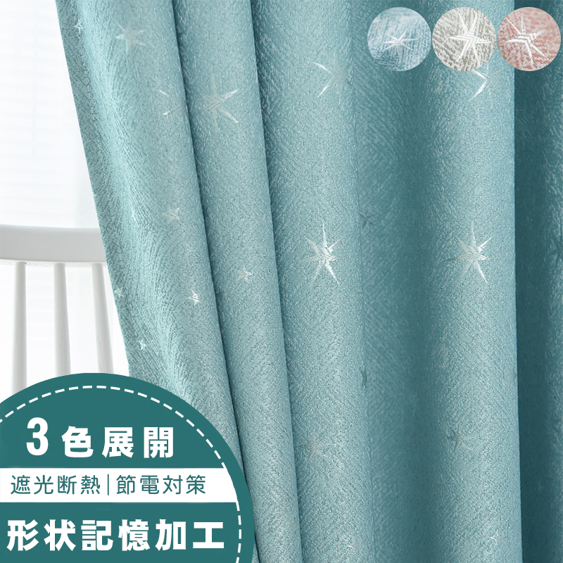 全3色 節電対策 省エネ 遮光カーテン 北欧 星柄 1級遮光 オシャレ 遮光 保温 断熱 遮熱 洗濯可 ドレープカーテン 2倍ヒダ