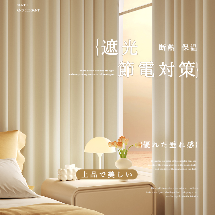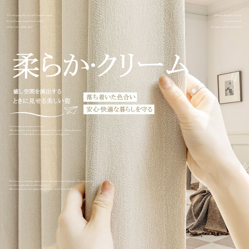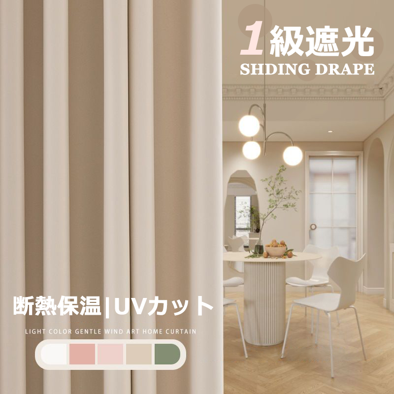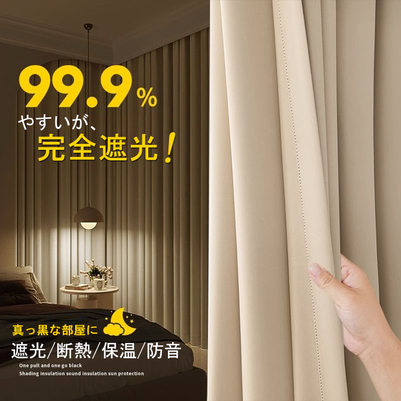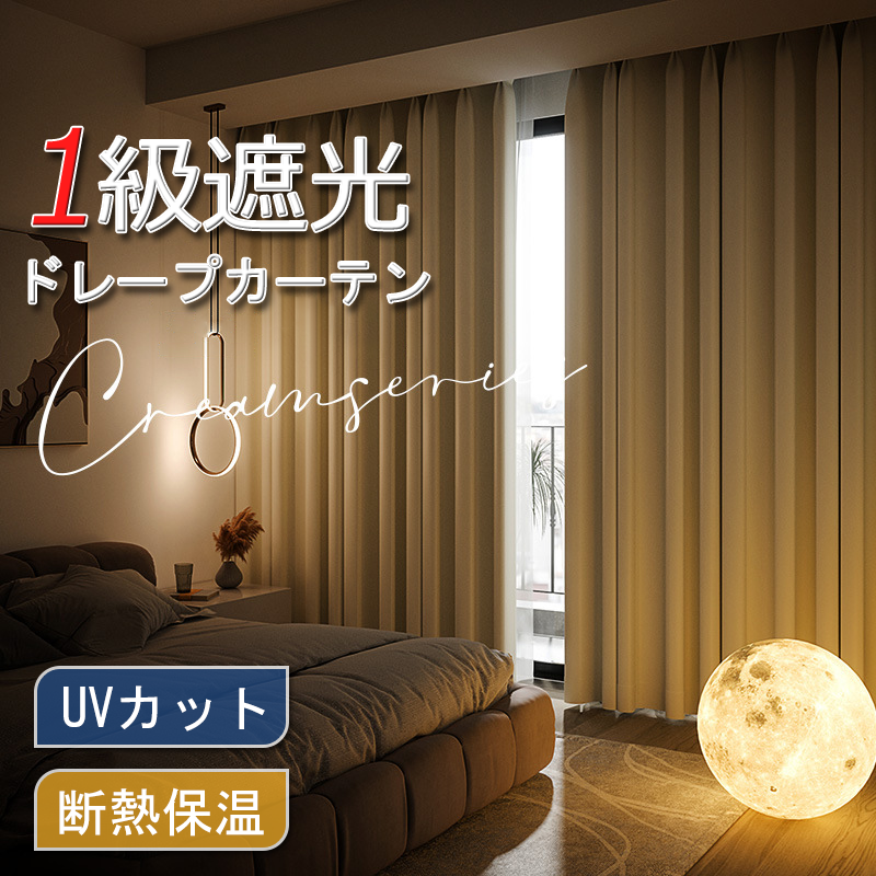 クリーム系 遮光 カーテン 全5色 おしゃれ 2級遮光 シンプル 厚地 断熱保温 UVカット 防音 ドレープカーテン 2倍ヒダ