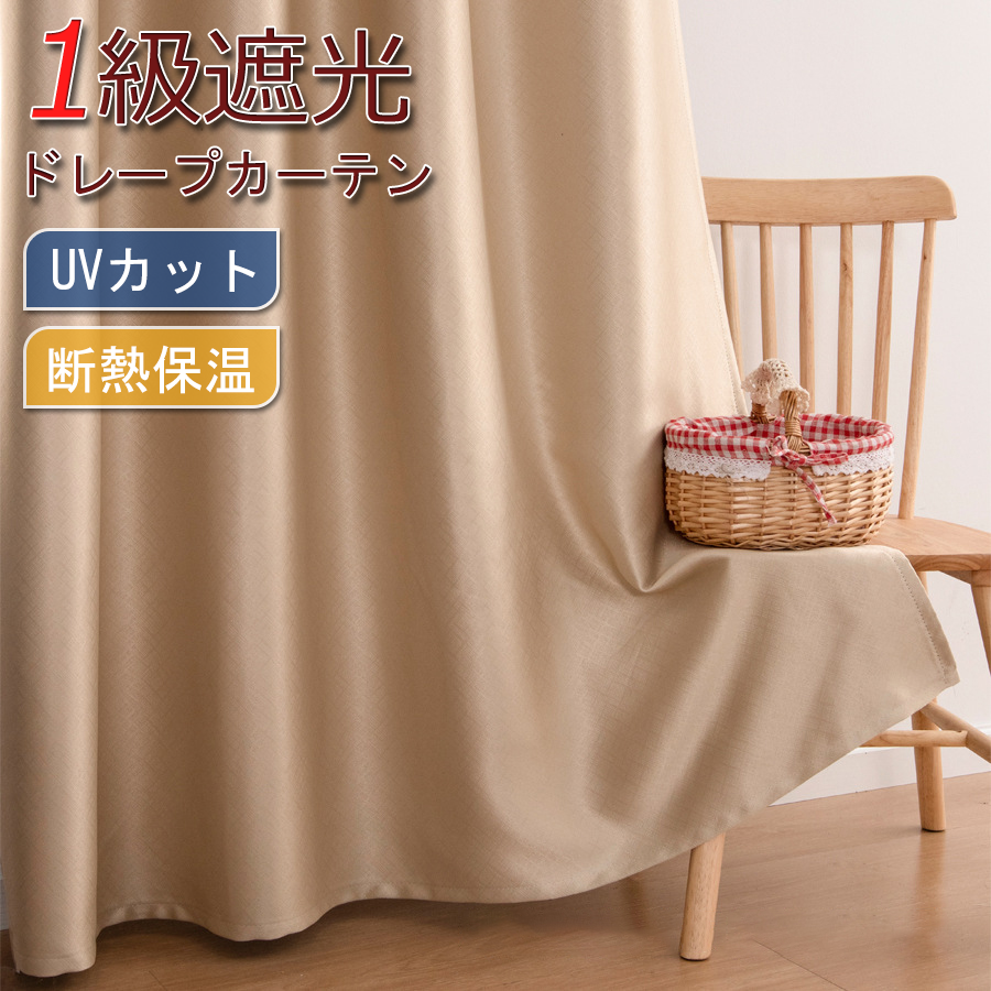 ドレープカーテン 遮光カーテン おしゃれ 1級遮光 UVカット 断熱保温 防音 シンプル 無地 厚地 カーテン 2倍ヒダ