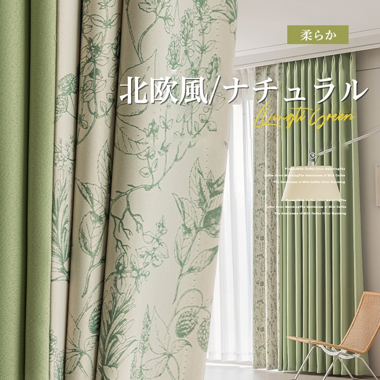 北欧 花柄 リビング 寝室 配色 断熱 防寒 防音 いい垂れ感 節電対策 洗濯可 ドレープカーテン 2倍ヒダ