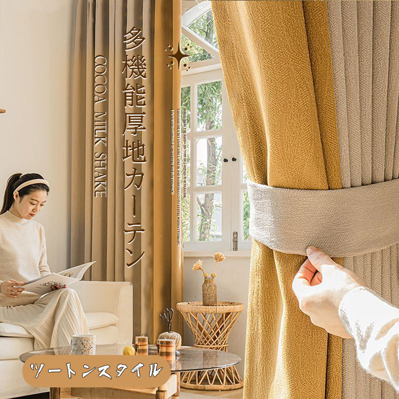 人気 1級遮光カーテン ツートンスタイルカーテン 2色の生地の組み合わせができる 厚地カーテン!安眠 断熱 防寒 節電効果 2倍ヒダ