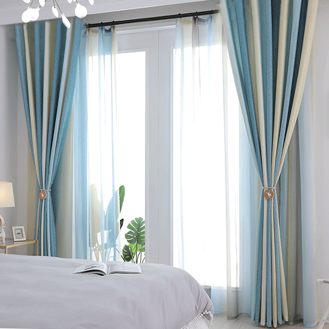 北欧風 おしゃれ 1級遮光カーテン 切り替え 配色 断熱保温 UVカット 洗える ドレープカーテン 2倍ヒダ