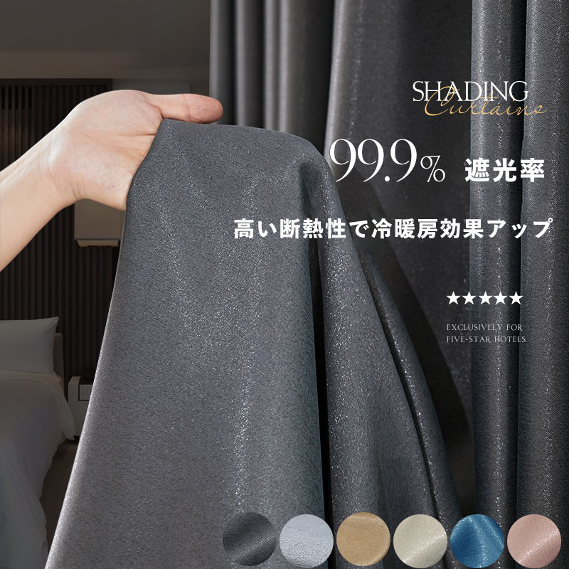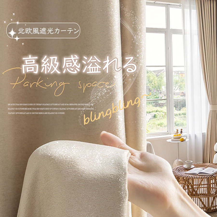 超目玉アイテム 超人気 6色 遮光 遮熱 保温 遮音 節電対策 省エネ 北欧 遮光カーテン キラキラ 光沢感 ドレープカーテン 2倍ヒダ