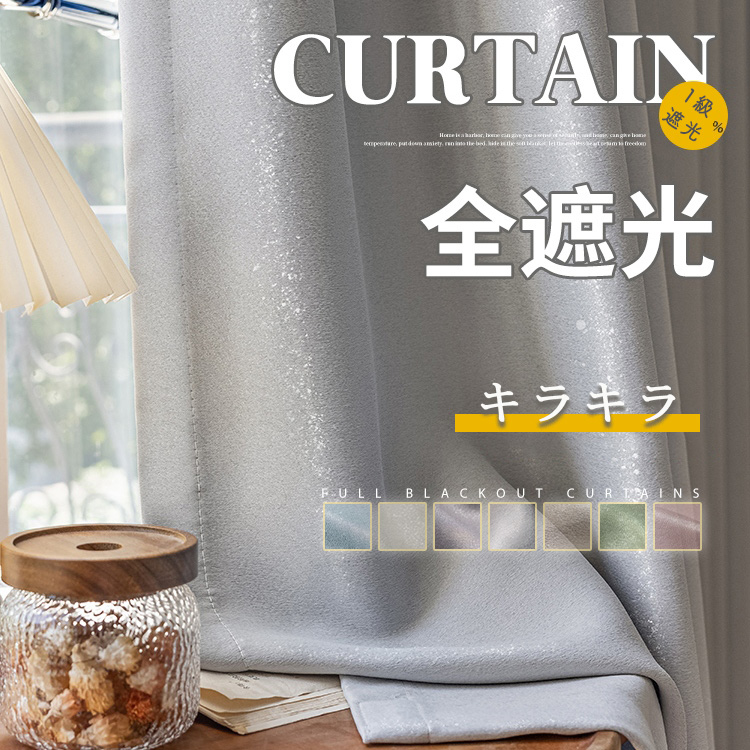 6色展開 遮光カーテン キラキラ 光沢感 北欧 遮光1級 節電対策 遮熱保温 遮音ドレープカーテン 2倍ヒダ