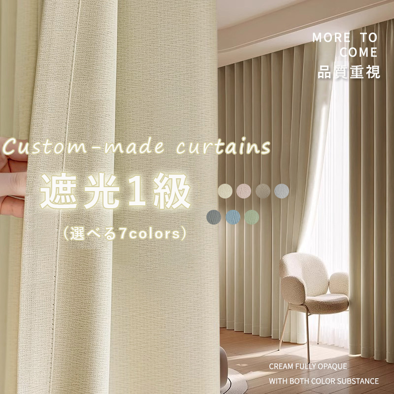 7色展開 無地 新居 リビング 寝室 1cm単位 オーダー 品質重視 遮光1級 寒さ対策 防寒 断熱 保温 冷暖房効率UP 洗濯機対応 ドレープ カーテン 2倍ヒダ