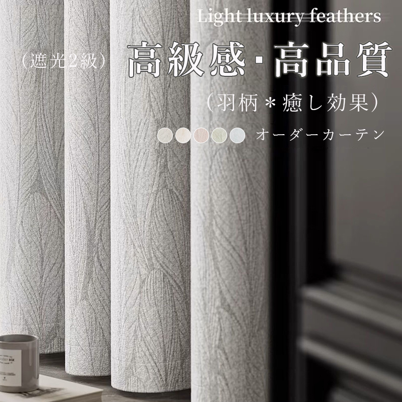 品質重視 高級感 5色展開 形態安定加工済み 羽柄 癒し効果 新居 1cm単位 オーダー 遮光2級 寒さ対策 防寒 断熱 保温 冷暖房効率UP ドレープ カーテン 2倍ヒダ